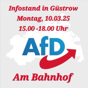 5. Infostand in Güstrow am Hauptbahnhof – 10.03.25 von 15.00 – 18.00 Uhr