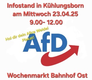 Infostand in Kühlungsborn am 23.04.2025 von 9.00 – 12.00 Uhr auf dem Wochenmarkt Bahnhof Ost