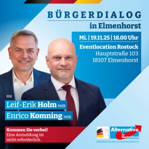 • Bundestagsveranstaltung in Elmenhorst mit Leif-Erik Holm und Enrico Komning am 19.11.2025 ab 18.00 Uhr