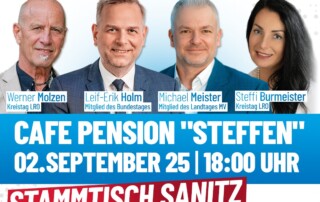 HANDELN statt REDEN ist unser MOTTO.  Bereits jetzt beginnt für unseren Kreisverband die Vorbereitung auf die Landtagswahl 2026. Der Kreisverband stellte am Samstag, 13.09.206 in Groß-Nieköhr die Kandidaten für die kommende Landtagswahl auf. Kandidiert haben: Im Wahlbereich 11 traten Thomas de Jesus Fernandes,  Dr. Volker Spengler und Maik Schwaß an. Mit sehr deutlicher Mehrheit von [...]
