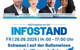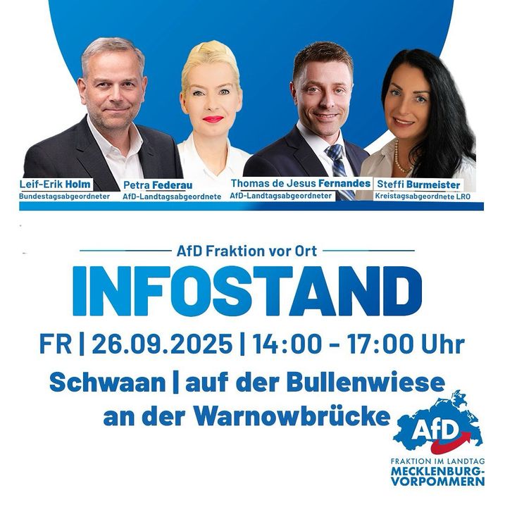 Von |2025-09-15T13:28:37+02:0013. September 2025|Aktuelles, Alternative für Deutschland Mecklenburg-Vorpommern, Pressemeldungen, Presseveröffentlichungen, Übergeordnete Gliederungen|0 Kommentare